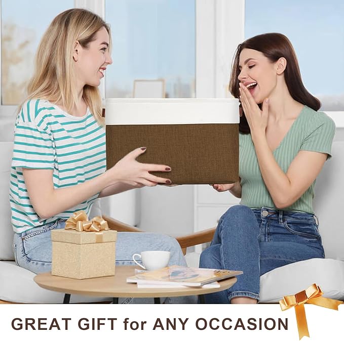 Large Storage Baskets for Shelves, Fabric Baskets for Organizing, Collapsible Storage Bins for Closet, Nursery, Clothes, Home & Office [3-Pack, White&Brown] -