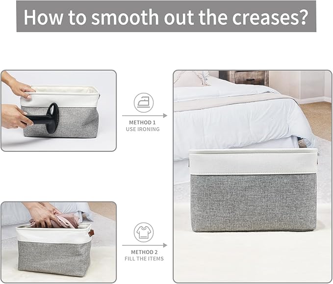 Large Storage Baskets for Shelves, Fabric Baskets for Organizing, Collapsible Storage Bins for Closet, Nursery, Clothes, Toys, Home & Office [3-Pack, White&Grey] -