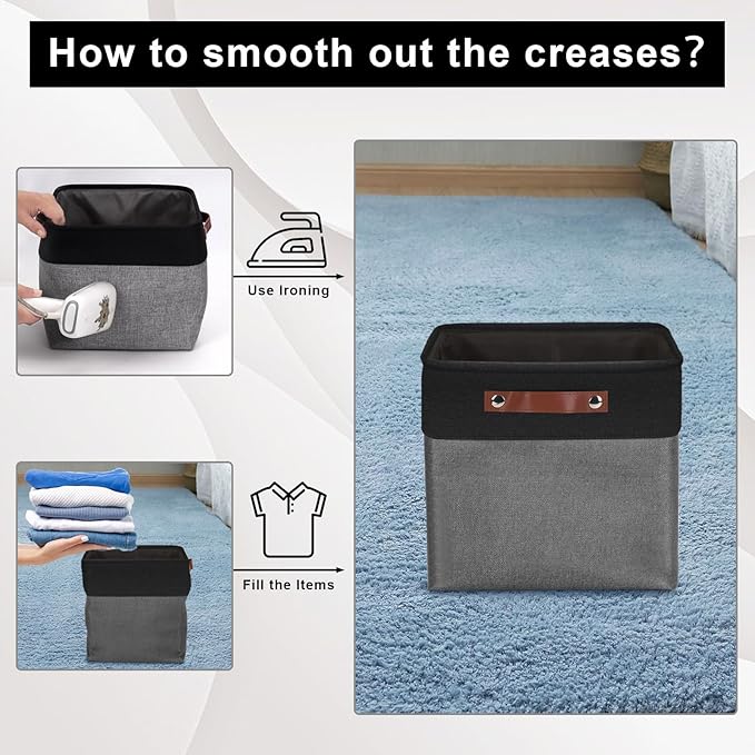 Collapsible Fabric Storage Cubes 11x11 Cube Storage Bins, 4 Pack Closet Baskets Box with Handles for Organizing, Shelf, Toys, Clothes, Home, Office, Nursery (Grey&Black)