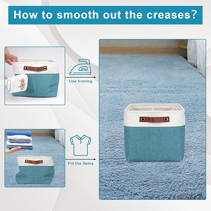 Storage Bins Large Fabric Storage Baskets for Shelves 3 Pack, Decorative Linen Closet Baskets with Handles for Organizing, Shelf, Clothes, Home, Office, 15x11x9.5Inches (Teal&White) -