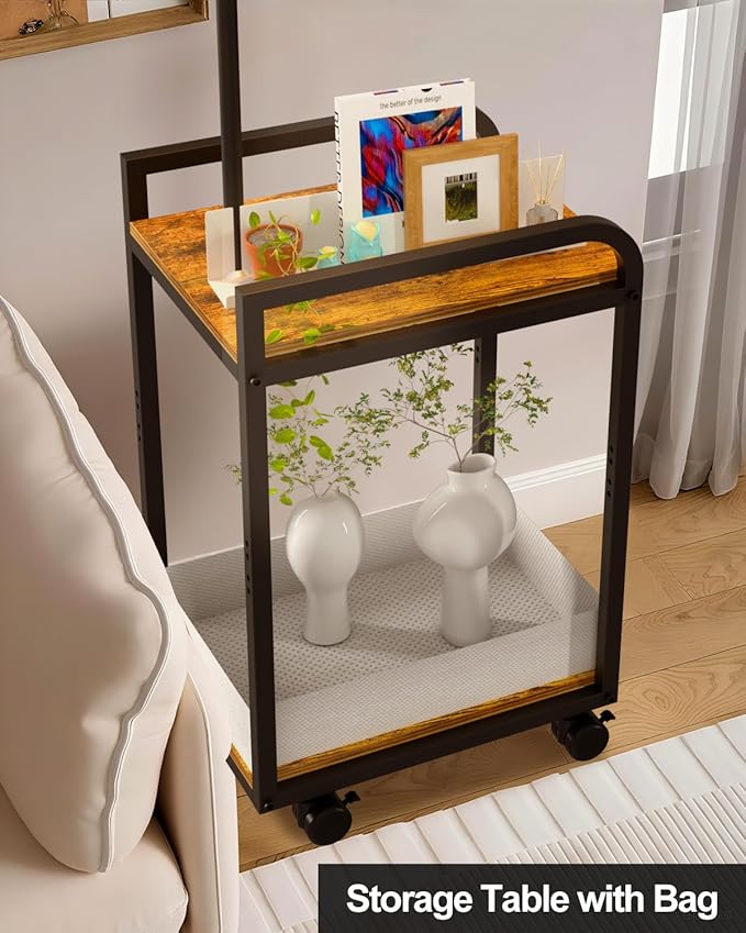 Lightdot 63IN Floor Lamps with Storage Table&Basket, Modern Standing Tall Lamps with Adjustable Fabric Lampshade and Movable&Fixed Casters, Coner End Table Lamp for Living Room/Bedroom/Office-Black -