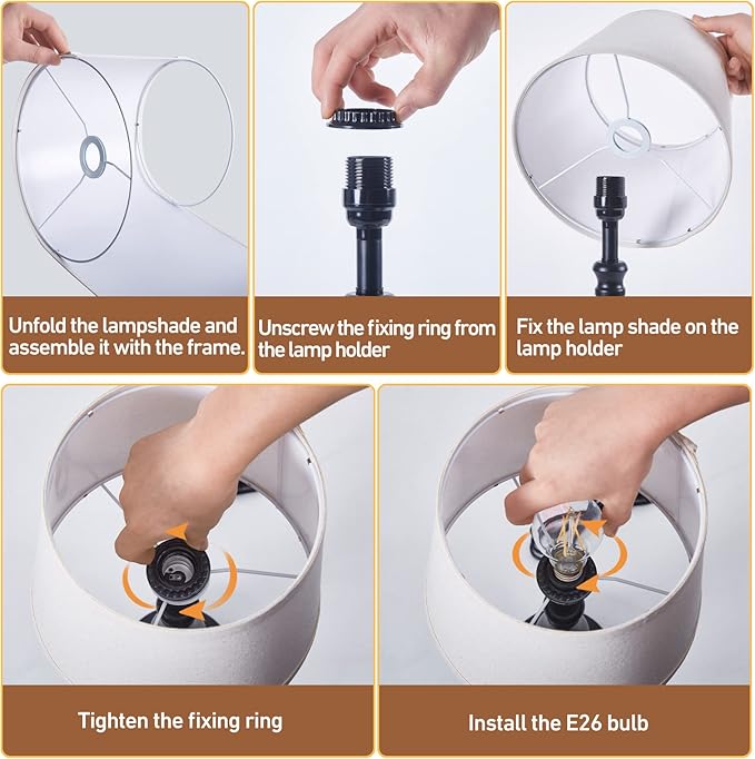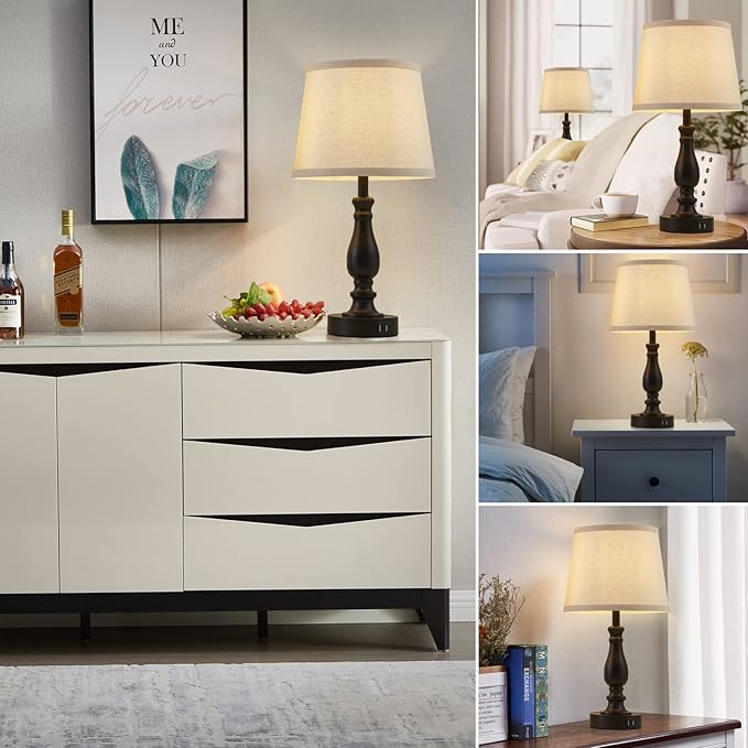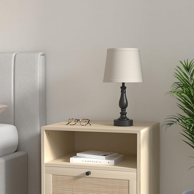 Oneach 25.75" Table Lamps for Living Room, Bedside Lamp 3-Way Dimmable Touch Control, Modern Black Nightstand Lamp with Fabric Shade, Vintage Table Lamp for Bedroom, Bulb Included -