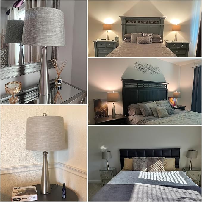 Oneach 25.75" Table Lamps for Living Room Bedroom, Bedside Lamp 3-Way Dimmable Touch Control, Modern Silver Nightstand Light Fabric Shade Vintage Accent Style