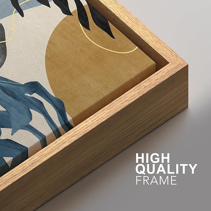 SIGNFORD Framed Canvas Print Wall Art Set Sun & Moon Mid-Century Desert Plants Abstract Shapes Illustration Modern Art Decorative Nordic Nature for Living Room, Bedroom, Office - 16"x24"x2 Natural -