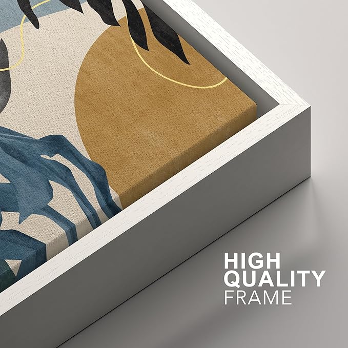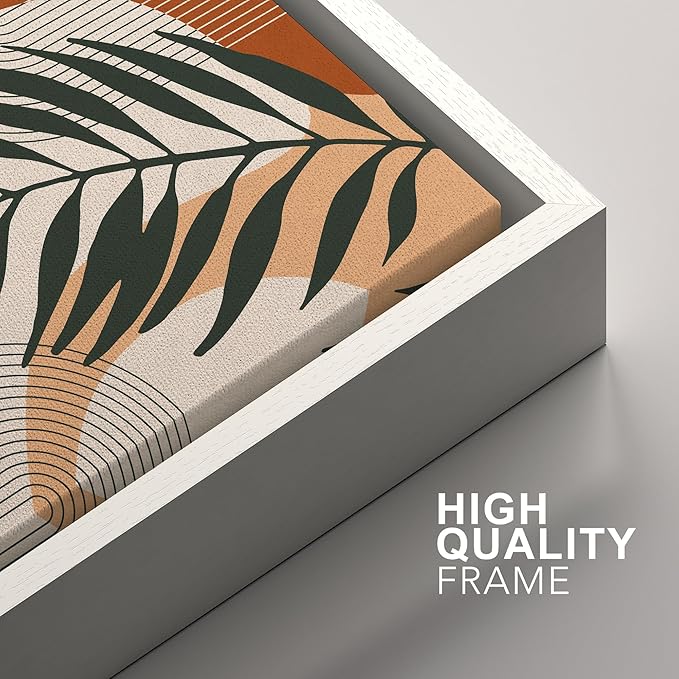 SIGNFORD Framed Canvas Print Wall Art Mid-Century Palm Leaf and Geometry Symbols Abstract Shapes Illustrations Modern Boho Nature Colorful Chic for Living Room, Bedroom, Office - 24"x36"x2 White -