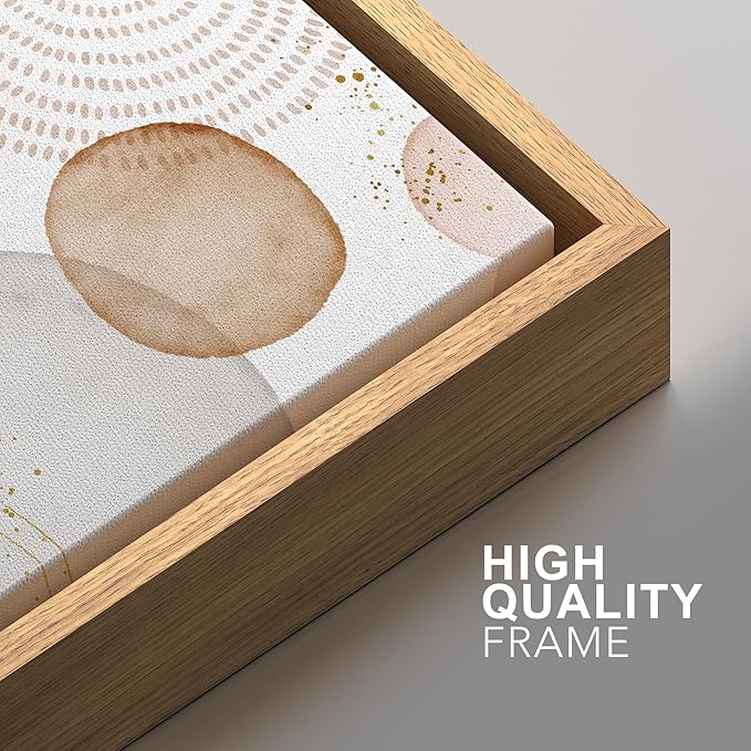 SIGNFORD Framed Canvas Print Wall Art Set Geometric Dot Patterns Earthy Beige and Brown Contrast Illustration Modern Art Decorative Nordic Nature for Living Room, Bedroom, Office - 24"x36"x2 Natural -