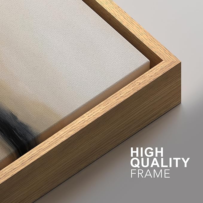 SIGNFORD Framed Canvas Print Wall Art Set Abstract White and Beige Brushstrokes on Neutral Illustrations Modern Art Decorative Bohemian for Living Room, Bedroom, Office - 24"x36"x2 Black -