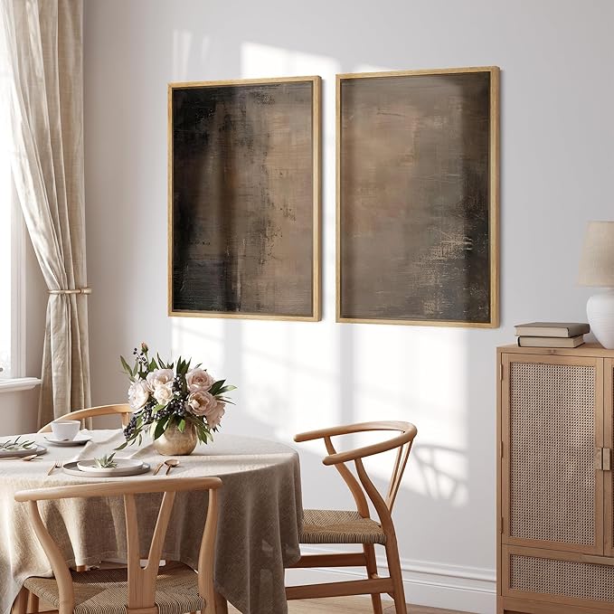 SIGNFORD Framed Canvas Print Wall Art Set Moody Dark Abstract Earth Tones Illustration Modern Art Decorative Nordic Nature for Living Room, Bedroom, Office - 16"x24"x2 White -