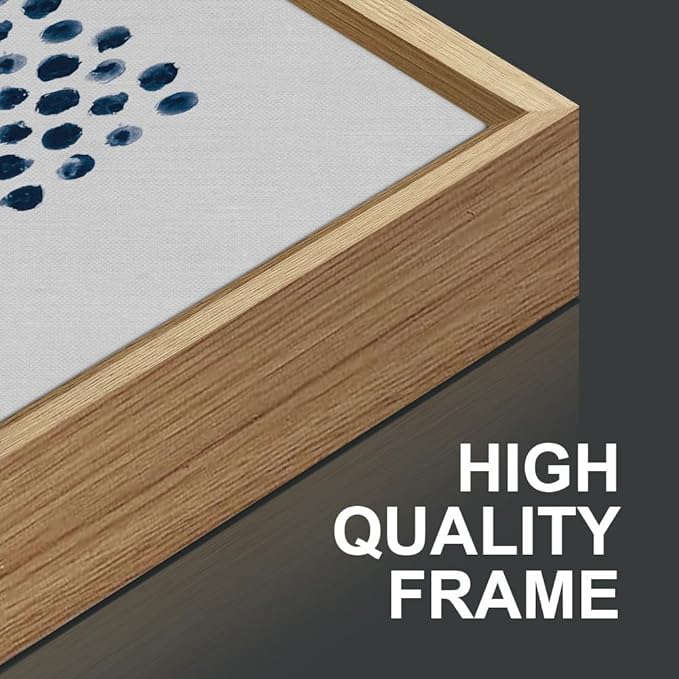 Tinonedraw Navy Blue White Framed Canvas Wall Art Set, Modern Geometric Dots Line Wall Decor, Neutral Abstract Shape Artwork, Cozy Contemporary Art Prints for Bedroom Living Room Office 16"x24"x3 -