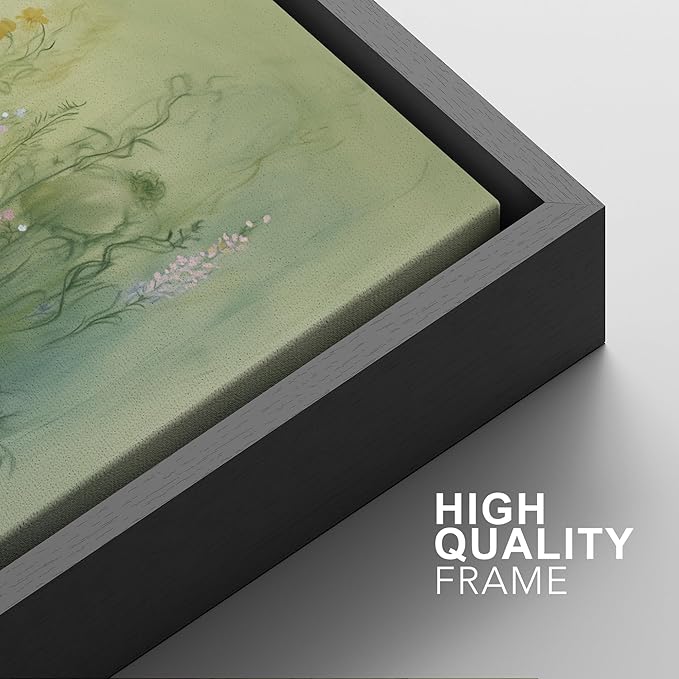 SIGNFORD Framed Canvas Print Wall Art Set Whimsical Green Wildflower Illustration Modern Art Decorative Nordic Nature for Living Room, Bedroom, Office - 16"x24"x2 Black -