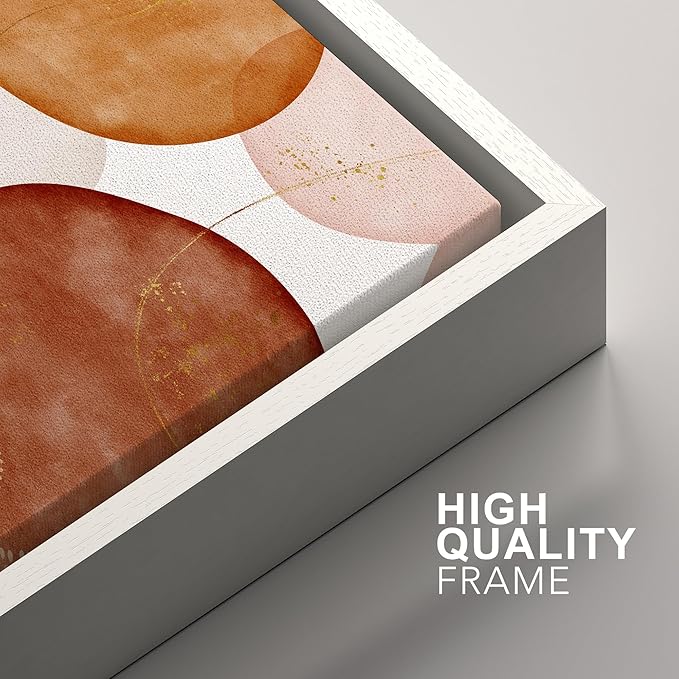 Tinonedraw Mid Century Modern Framed Canvas Wall Art Set, Boho Minimalist Geometric Wall Decor, Bohemian Sun and Moon Art Paintings, Beige Brown Wooden Artwork for Living Room Bedroom Office 24"x36"x3 -