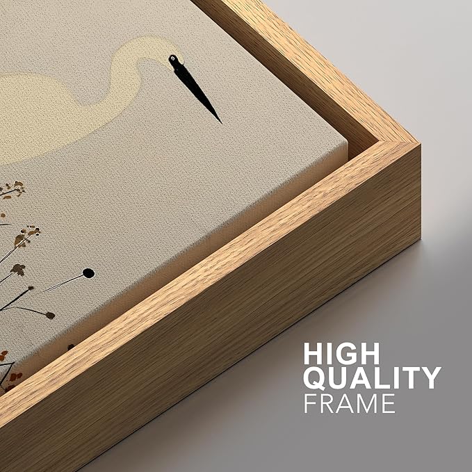 SIGNFORD Framed Canvas Print Wall Art Set Minimalist Heron Art Simplified Shapes in Neutral Tones Illustration Modern Art Decorative Nordic Nature for Living Room, Bedroom, Office - 16"x24"x2 Natural -