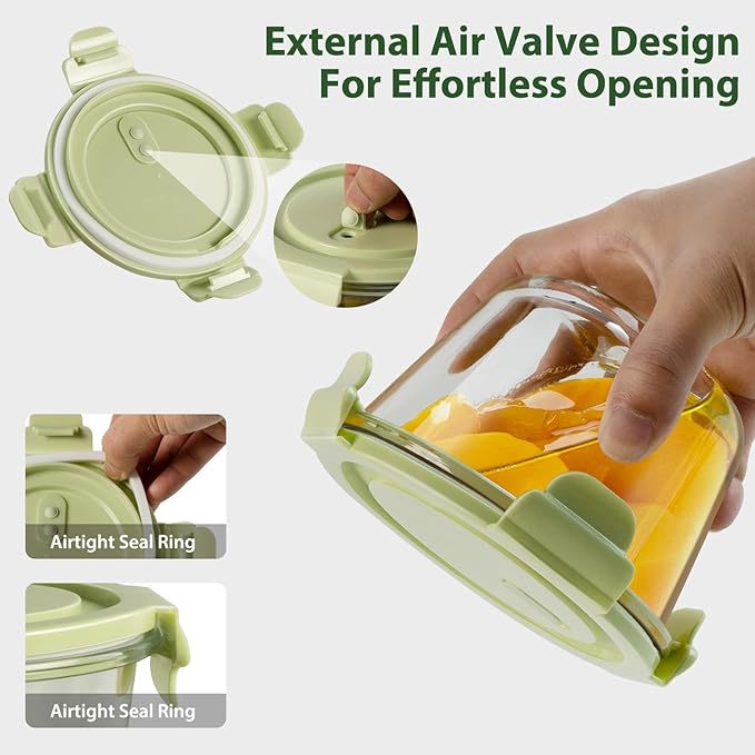 [8-Pack,30 oz]Glass Meal Prep Containers,MCIRCO Glass Food Storage Containers,Airtight Glass lunch Containers with Lids, Microwave, Oven, Freezer and Dishwasher, Green -