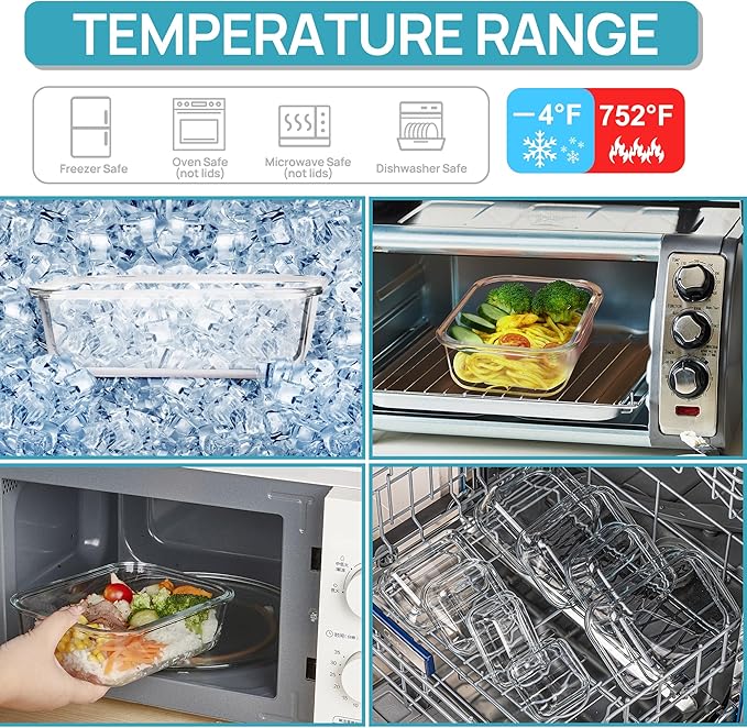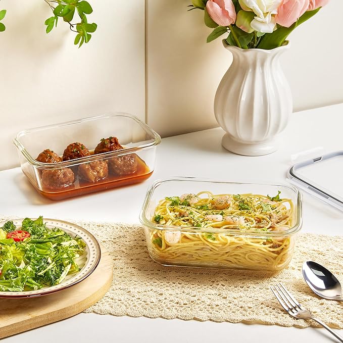 Vtopmart Glass Storage Containers with Lids, Meal Prep Food Container Sets, Lunch Box with Snap Airtight Lid for Microwave, Oven, Freezer and Dishwasher (10pack 35oz) -