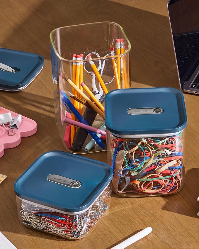 Caraway 22pc Glass Food Storage Set - Storage Containers for Food - Non-Toxic Ceramic-Coated Glass - Air Release Technology - Compact & Stackable Design - Navy -