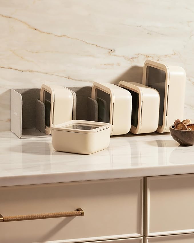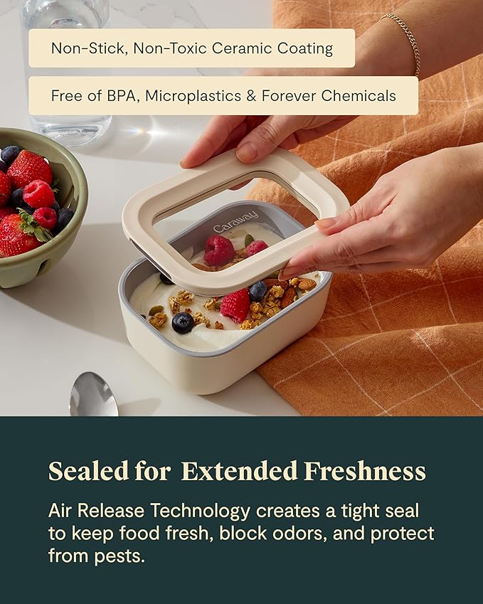Caraway 22pc Glass Food Storage Set - Storage Containers for Food - Non-Toxic Ceramic-Coated Glass - Air Release Technology - Compact & Stackable Design - Cream -