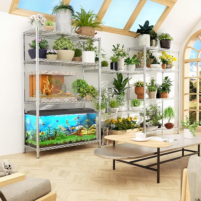 1000 lbs 4 Tier Shelf Metal Storage Shelves Wire Rack Closet Organizers for Garage Kitchen Bathroom Laundry Chrome 11.8" D x 25.6" W x 45.5" H -