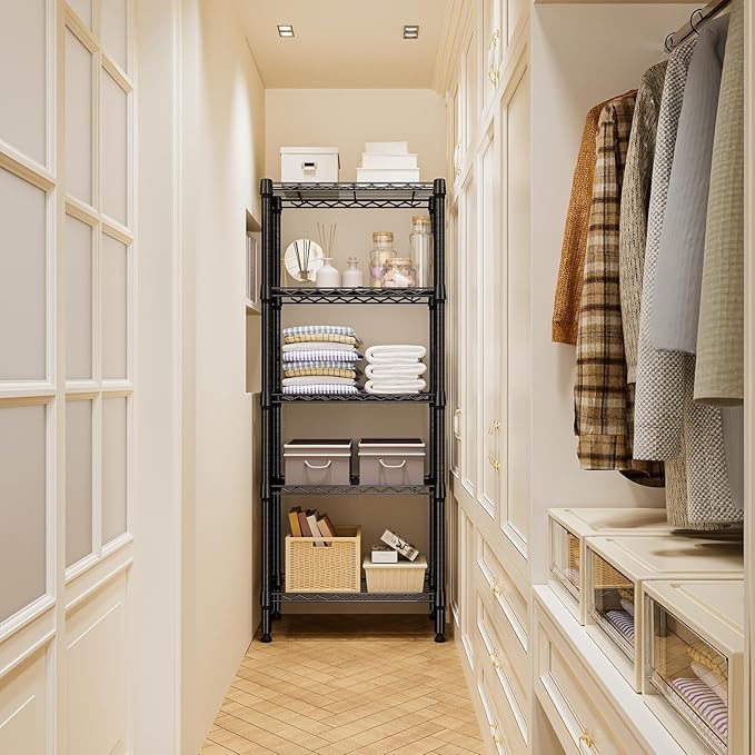 1250 lbs 5 Tier Shelf Metal Storage Shelves Wire Rack Closet Organizers for Garage Kitchen Bathroom Laundry Black 11.8" D x 23.6" W x 59.5" H -