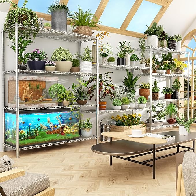 Storage Shelves, 3 PCS 48" L x 20" W x 72" H Heavy Duty Garage Wire Shelving Unit Loads 2000LBS, 5-Tier Adjustable Metal Industrial Utility Shelf Rack for Kitchen, Laundry Room, Basement -