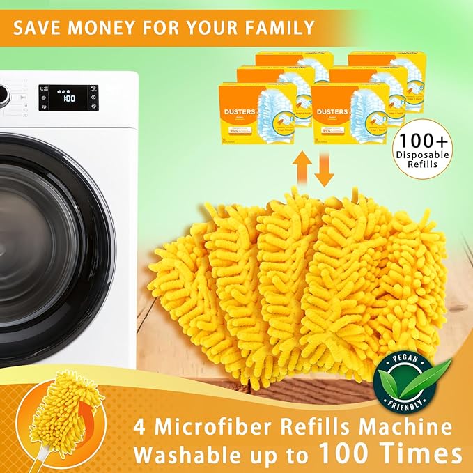 30 Count Heavy Duty Disposable Microfiber Duster Refills - Compatible with Swiffer, 1 Short Handle and 1 Extendable Handle