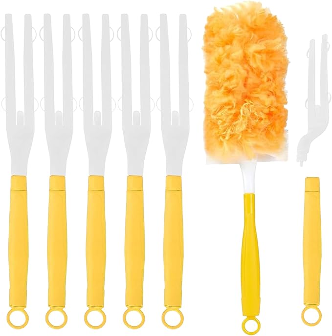 Reusable Duster Refill for Swiffer Duster Refill, 360° Heavy Duty Duster Refills Kit, 5 Pack with 1 Handle Microfiber Ceiling Fan Dusters for Cleaning(Orange, 5PCS) -