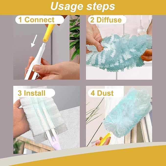 Reusable Duster for Swiffer, 2 Refills +1 Handle, 360 Heavy Duty Duster Refill Compatible with Swiffer Hand Dusters, for Dusting Furniture, Blinds, Ceiling Fans, Walls and More, Yellow -
