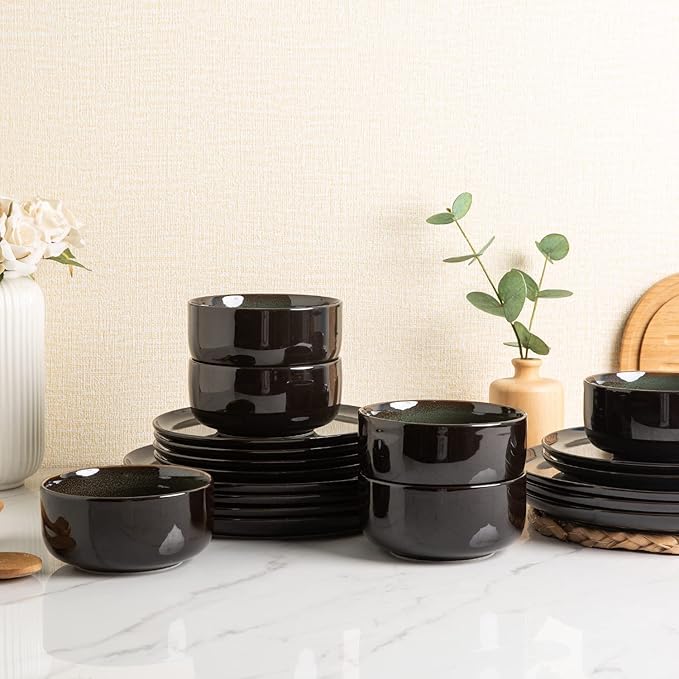 Famiware Mercury Plates and Bowls Sets, 18 Pieces Stoneware Dinnerware Sets, Dishes Set for 6, Microwave and Dishwasher Safe, Light Green -