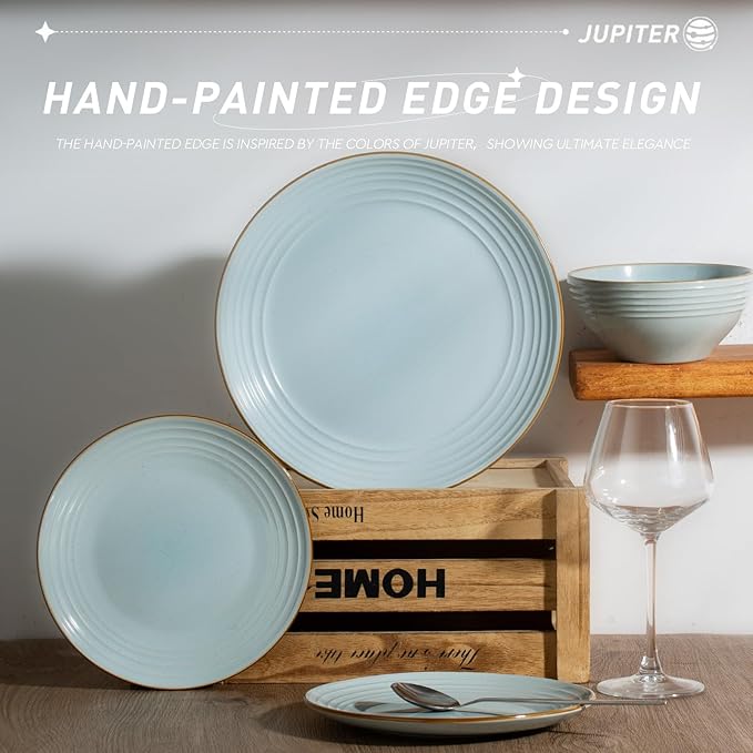 famiware Milkyway Dinner Plates, 10.24 inch Plates for 6, Stoneware Dessert Plates Dish Set for Kitchen, Reactive Glaze Plate Set, Microwave and Dishwasher Safe, Light Blue -