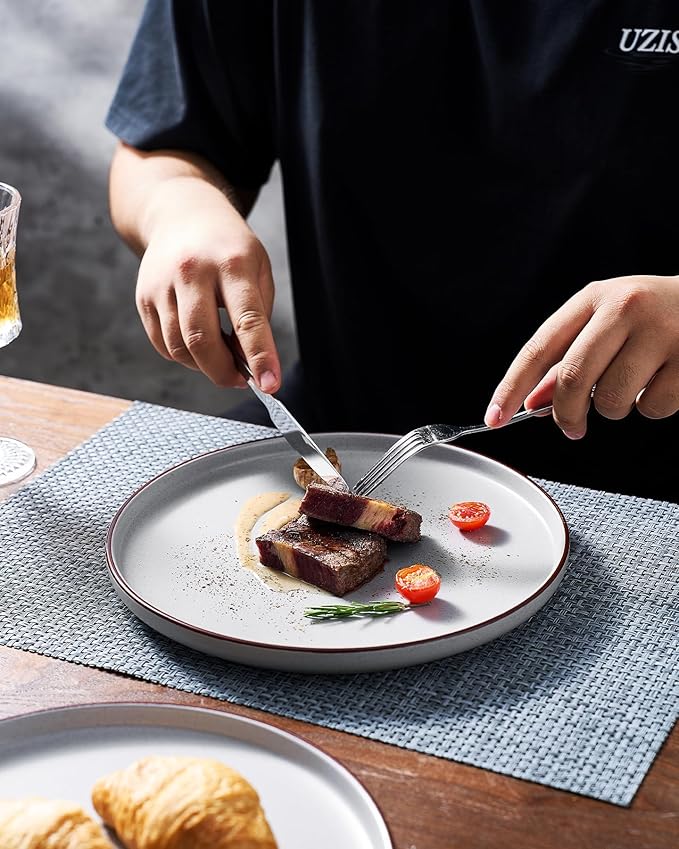 famiware Milkyway Dinner Plates, 10.24 inch Plates for 6, Stoneware Dessert Dish Set for Kitchen, Speckled Handmade Ceramic Plates, Microwave and Dishwasher Safe, Light Grey