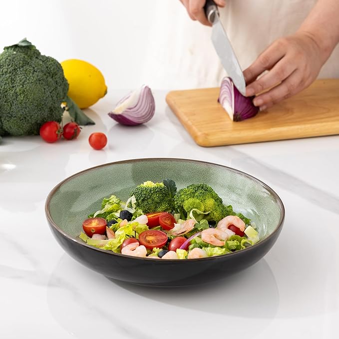 LERATIO Ceramic Plates Set of 6, 8.5 Inch Reactive Glaze Light Weight Porcelain Salad Plates,Modern Shape Dinnerware Dishes Set for Kitchen,Microwave&Dishwasher&Oven Safe,Resistant-Green -