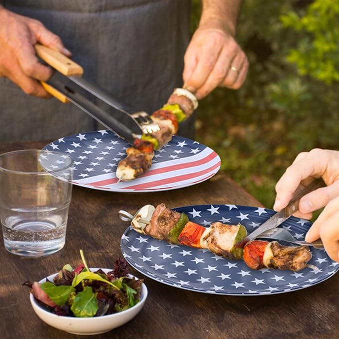 12-Piece Melamine Dinner Plates - 10 Inch Unbreakable Plates for 4th of July Party, Red White Blue Decorations, Lightweight Dinnerware for BBQ, Picnic, Independence Day - Mixed Colors -