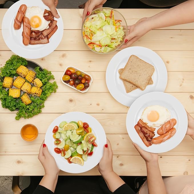White Melamine Dinner Plates,12pcs Dishes Set,10inch Lightweight Round Plastic Plates,Scratch Resistant Unbreakable Serving Dishes,White -