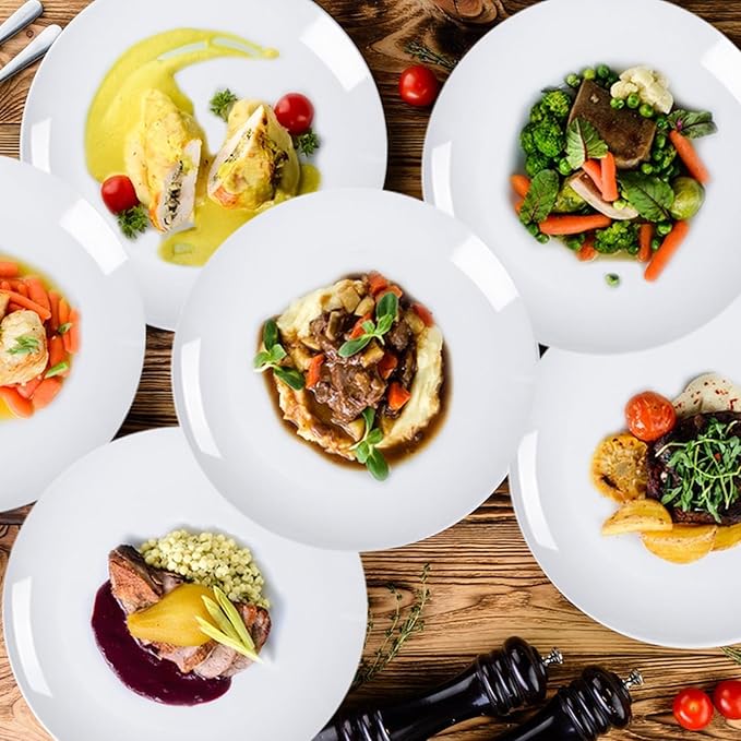 White Melamine Dinner Plates,6pcs Dishes Set,10inch Lightweight Round Plates,Scratch Resistant Unbreakable Serving Dishes,White -