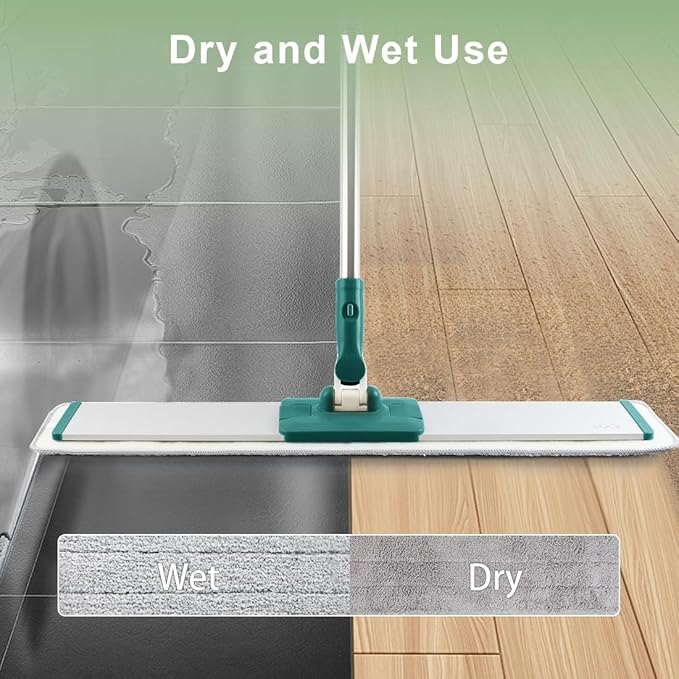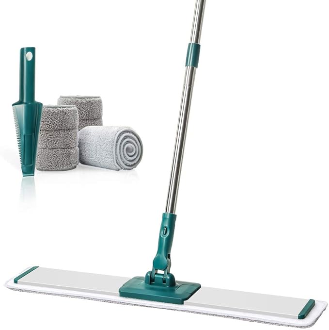 CQT Commercial Flat Microfiber Floor Mop Cleaning System 24" Inch Wet Dry and Dust Hardwood with 4 Washable Pads Cleaner for Laminate Tile Stainless Steel Handle and Extension (PT14 Green) -