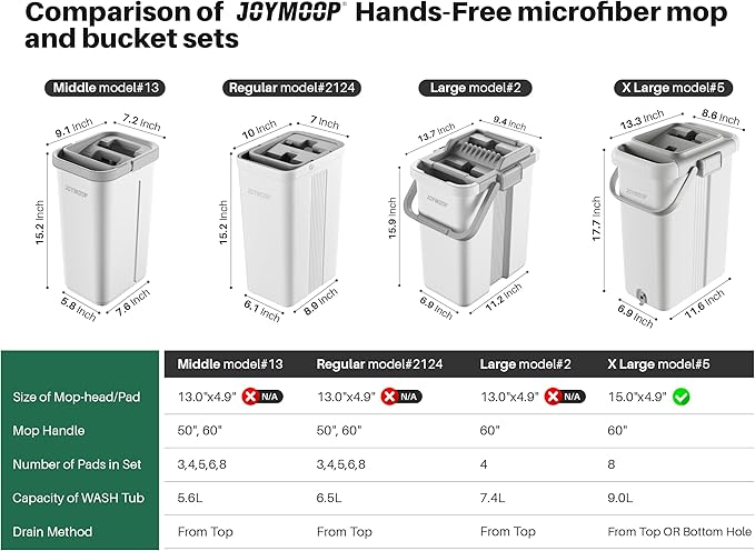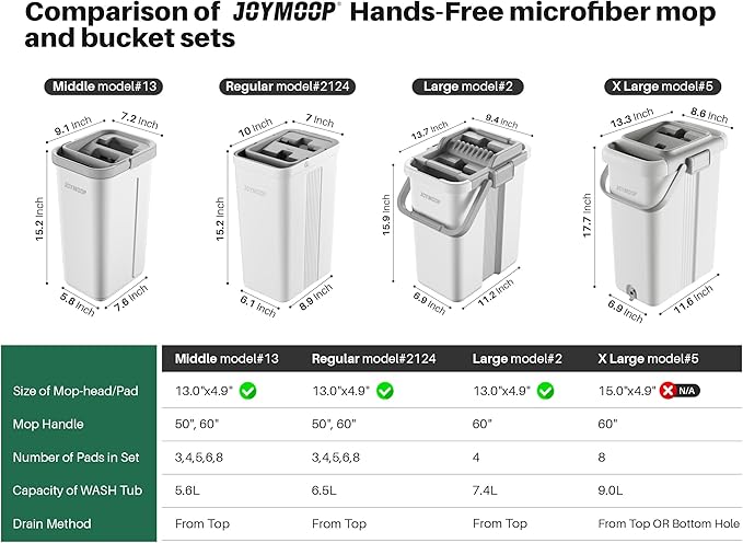JOYMOOP Flat Mop Pad, Microfiber Mop Pad, Squeeze Mop Pads Replacement, 13" Refill 1 Pack - Grey -
