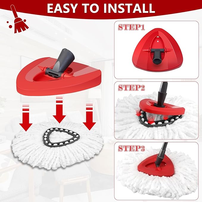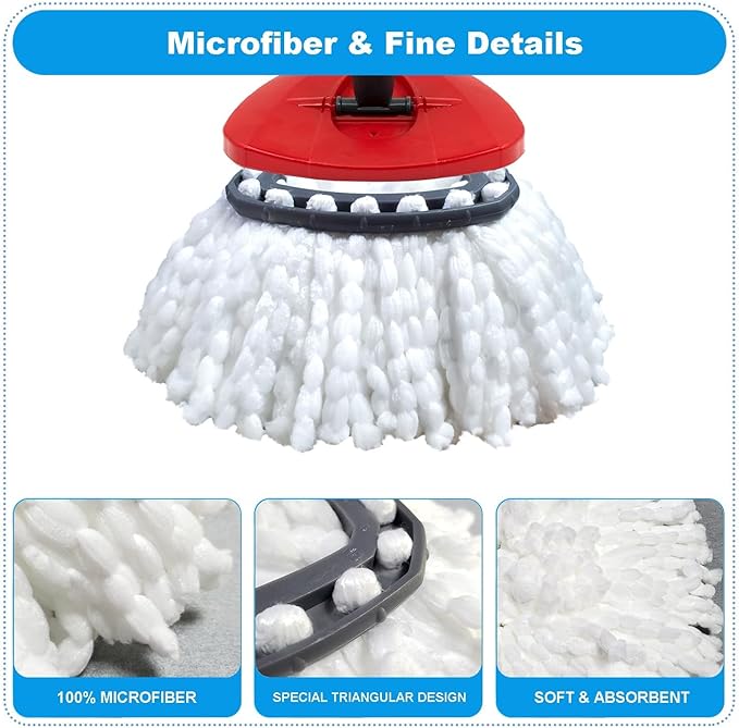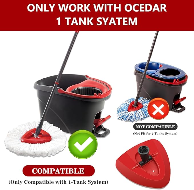 Easywring 1-Tank System,Mop Replacement Heads for O-Ceda Mop Replace Head, Spin Mop Heads Replacements, Microfiber Spin Mop Refills, Easy Cleaning Mop Head Replacement (Red Mop Base 1pcs) -