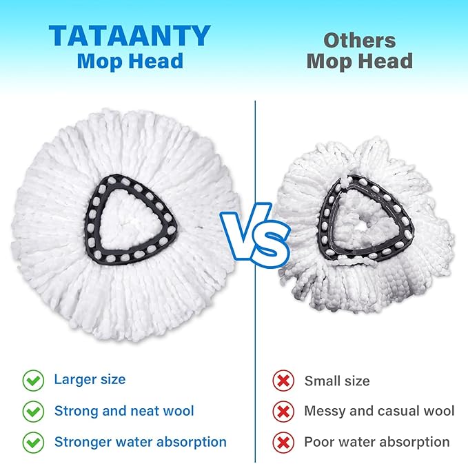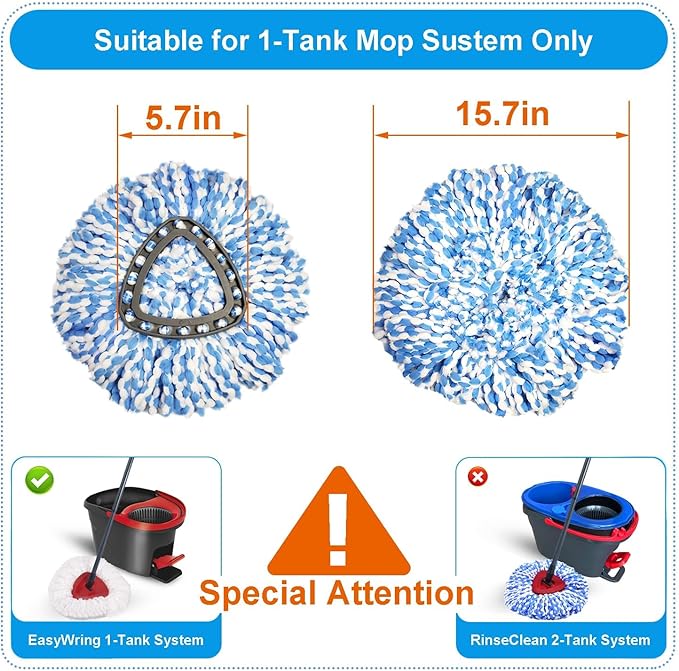 Easywring 1-Tank System,Mop Replacement Heads for O-Ceda Mop Replace Head, Spin Mop Heads Replacements, Microfiber Spin Mop Refills, Easy Cleaning Mop Head Replacement (Blue and White 3pcs) -
