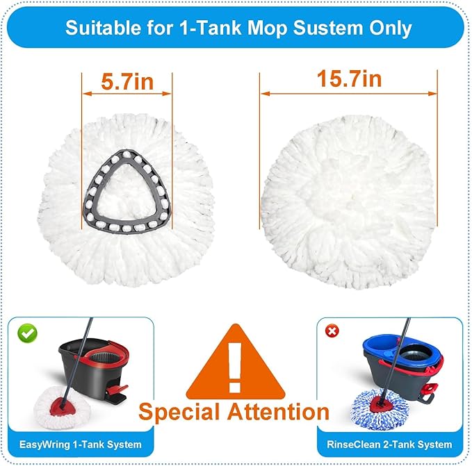 Easywring 1-Tank System,Mop Replacement Heads for O-Ceda Mop Replace Head, Spin Mop Heads Replacements, Microfiber Spin Mop Refills, Easy Cleaning Mop Head Replacement (White-3pcs) -