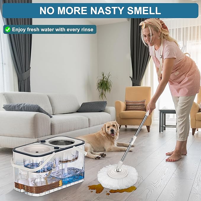 Mop and Bucket with Wringer Set for Home, Spin Mop and Bucket Separates Dirty and Clean Water,4-Chamber Mop Bucket, Best Household Cleaning Tools with 6 Replacement Mop Heads,4X Wheel -