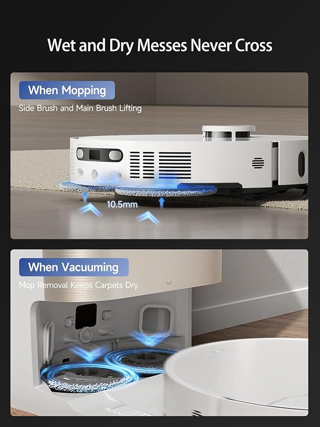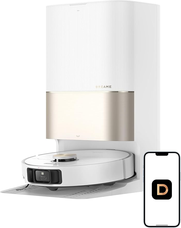 DREAME X40 Ultra Robotic Vacuum with Removable & Liftable Mop, 12,000Pa Suction, Side Brush Extensive Cleaning, 158°F Mop & Washboard Self Cleaning, Auto-Empty, Auto Refill, liftable Brushes White -