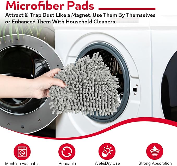 Microfiber Dust Mop for Hardwood Floor Cleaning, Dry and Wet Baseboard and Floor Duster, Household Cleaning Tool for Kitchen, Bathroom -