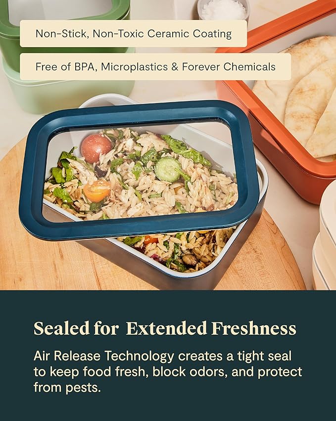 Caraway 2pc Glass Food Storage Set - 6.6 Cup Food Containers (2) - Ceramic Coated - Non Toxic, Non Stick Lunch Box with Lids. Dishwasher, Oven, & Microwave Safe - Perracotta -