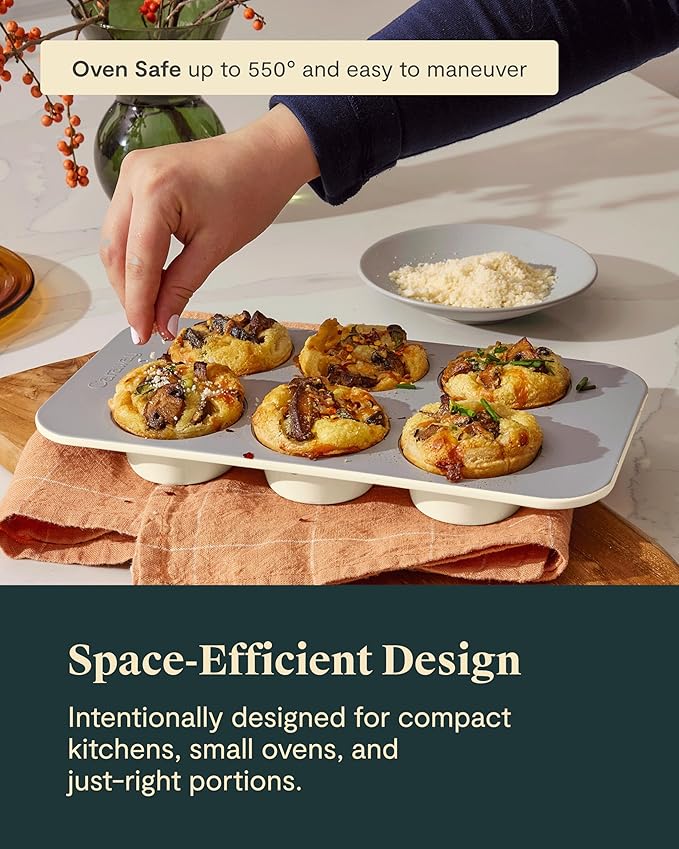 Caraway Nonstick Ceramic 6 Cup Muffin Pan – Non-Toxic, PTFE & PFOA Free – Oven Safe – Aluminized Steel Core – Small Muffin Pan for Baking Cupcakes, Muffins & More - Cream -