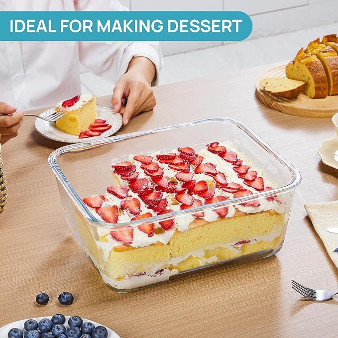 63 Oz 2 Pcs Large Glass Food Storage Containers 8 Cups Family Size Set Baking Containers with Locking Lids Storing food, BPA Free Leak Proof Microwave Oven Safe (2, 63 OZ) -