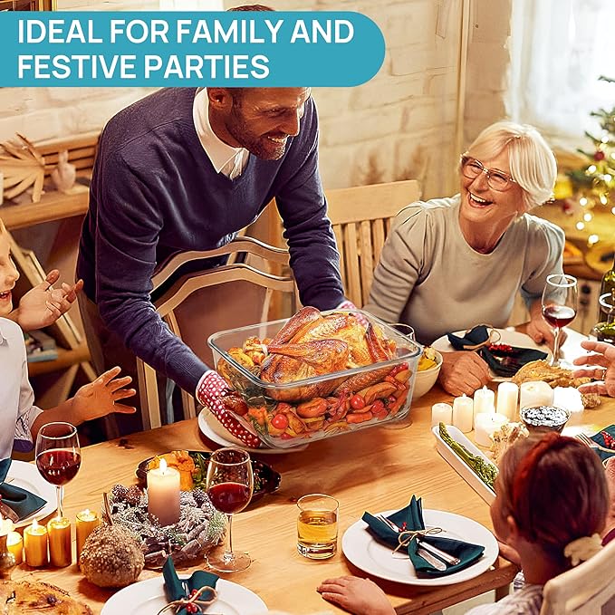 Razab 17 Cups / 132 Oz / 3900ml Large Glass Food Storage Containers with Lids - Leakproof, BPA-Free Large Meal Prep Container Ideal for Roasting Turkey, Store Leftover - Microwave & Oven Safe -