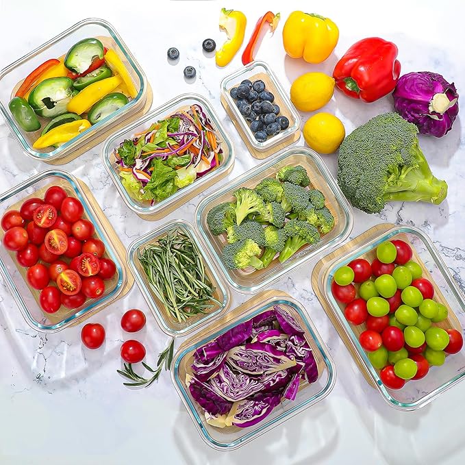 Urban Green Glass Containers with Bamboo Lids, Meal Prep Glass Food storage Container Set, 5 Pack, Pantry & Kitchen Organizer, Microwave, Oven, Freezer Safe -