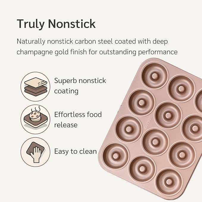 HAPPIELS 12 Well Donut Pan Nonstick, Non Toxic PFOA & BPA Free Donuts Mold for Baking, Doughnut Tin for Oven, Doughnuts Pans and Molds Non Stick Nontoxic, Baking Tray Pans & Trays without Teflon -