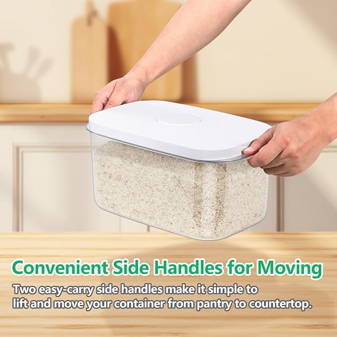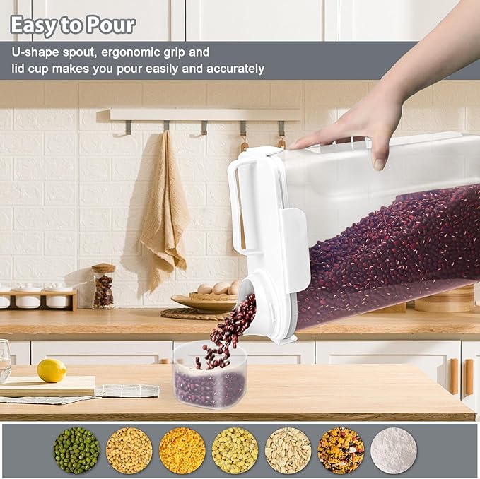 Rice Container, Airtight Rice Storage Container 10lb, Cereal Containers Storage, BPA Free Food Dispenser with Pouring Spout Handle for Flour Pasta Grain, Pet Dog Cat Bird Food Storage Container -