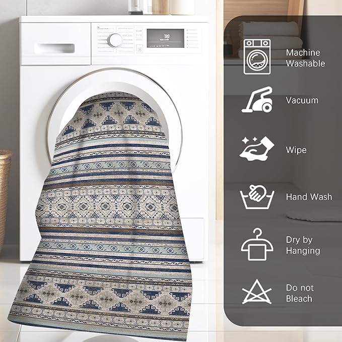 RUGSURE Washable Area Rugs 3' x 5 ' - 1/6 Thick - Moroccan-Inspired -Stain & Water Resistant Non-Slip - Resistant Rug for Living Room, Bedroom, Nursery, Pet & Child Friendly (Blue and Brown) -
