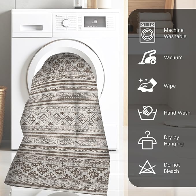 RUGSURE Washable Area Rugs 5' x 7' - 1/6 Thick - Moroccan-Inspired -Stain & Water Resistant Non-Slip - Resistant Rug for Living Room, Bedroom, Nursery, Pet & Child Friendly (Brown) -